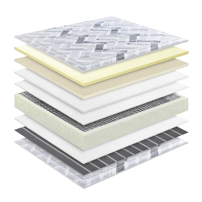 Prana plast lateksa, znana kot "solze angelov", zagotavlja: Antibakterijsko, proti pršicam, odporno na prah in plesen Hipoalergeno in antistatično Vrhunska zračnost, odvajanje toplote in odvajanje vlage Visoka odpornost z močno podporo in tihim delovanjem Pralno v pralnem stroju za enostavno nego Ta plast zagotavlja izboljšano higieno, udobje in podporo, kar je idealno za hotele, oskrbovana stanovanja in visokouporabne